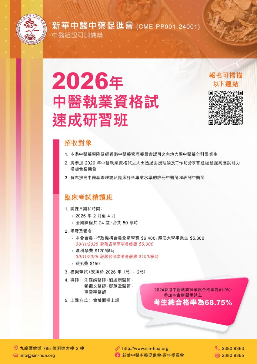 2026年度中醫執業資格試速成研習班 即將開課 !
